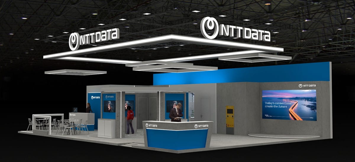 Stand de NTT DATA, 4A20 en el Pabellón 4, Fira Gran Via, Barcelona, España