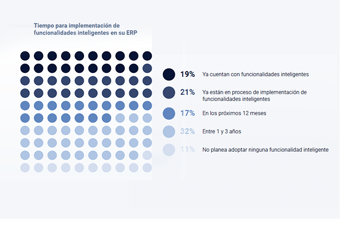 El estudio muestra que más del 40% de las empresas encuestadas en Latinoamérica ya han adoptado soluciones ERP inteligentes con el fin de optimizar sus operaciones y mejorar su competitividad en el mercado. En ese sentido, contar con un equipo especializado asegura que las capacidades técnicas y funcionales se implementen de manera efectiva en la organización.